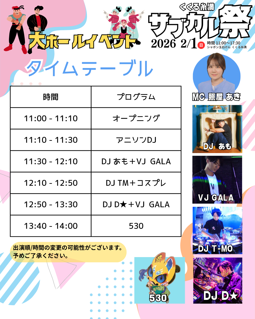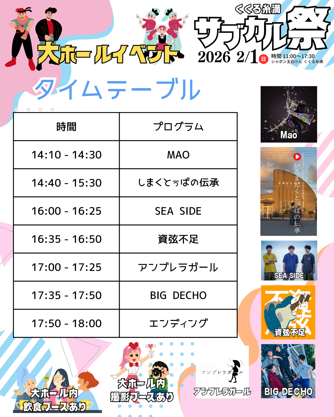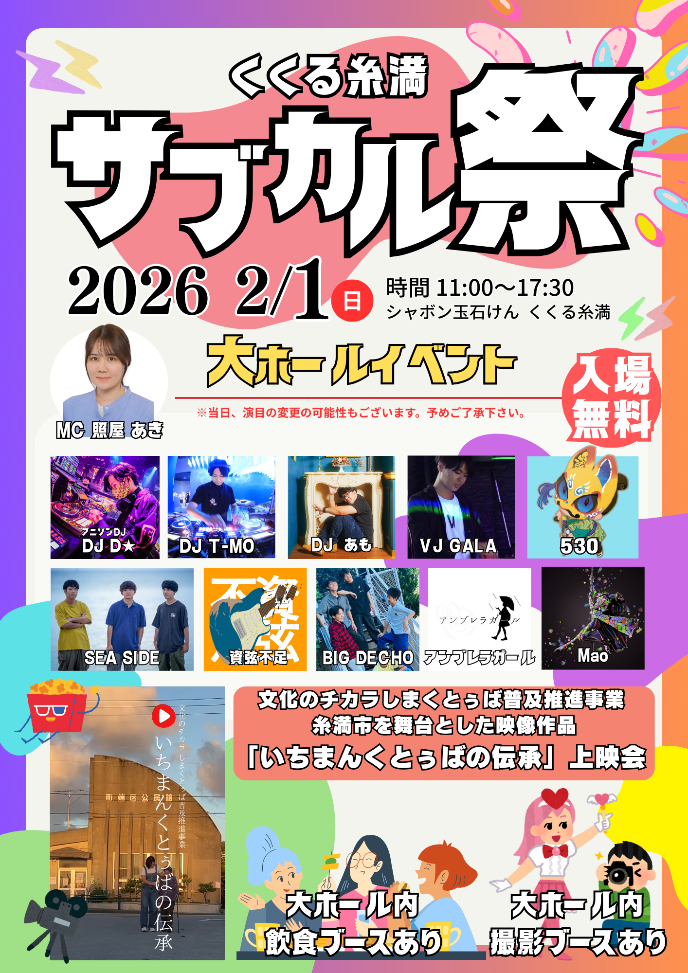 【令和8年2月1日(日) 開催! くくる糸満 サブカル祭 ※最新情報更新(1/21) 大ホールイベントタイムスケジュール発表! 】