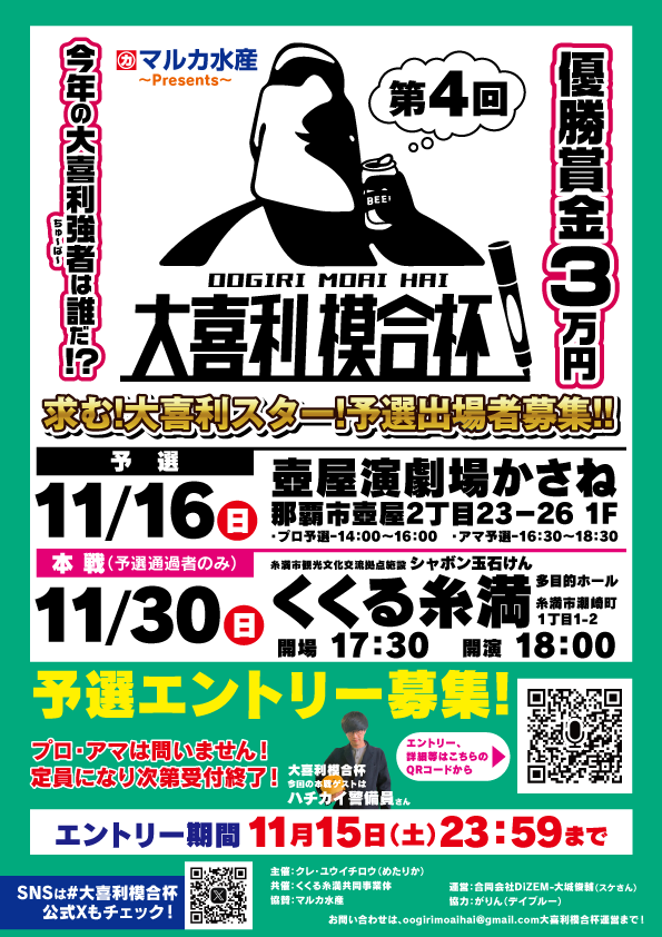プロ・アマチュア、他業種、一般、どなたでも参加可能な沖縄で開催する大喜利の賞レース。