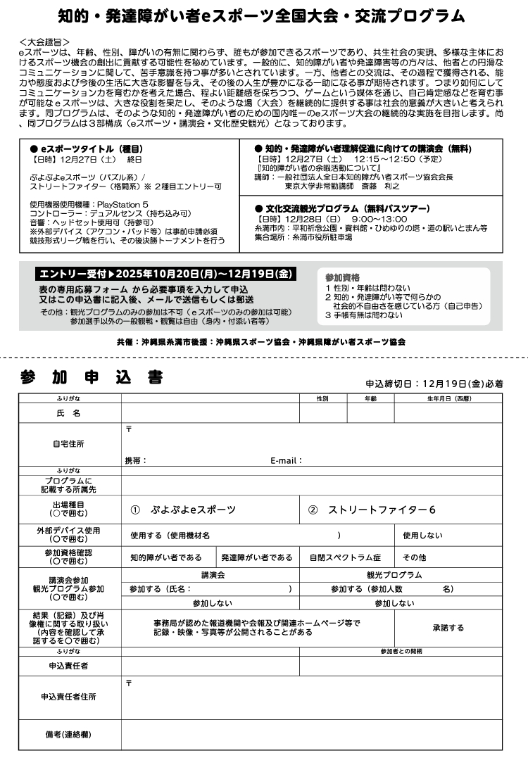 このたび、沖縄で障がい者対象とした大会を開催します。