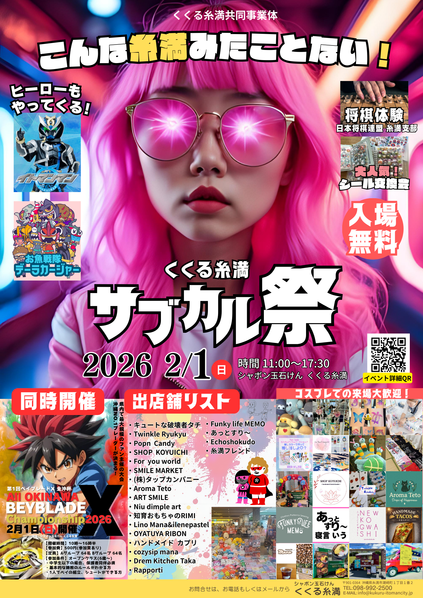 【令和8年2月1日(日) 開催! くくる糸満 サブカル祭 ※最新情報更新(1/21) 大ホールイベントタイムスケジュール発表! 】