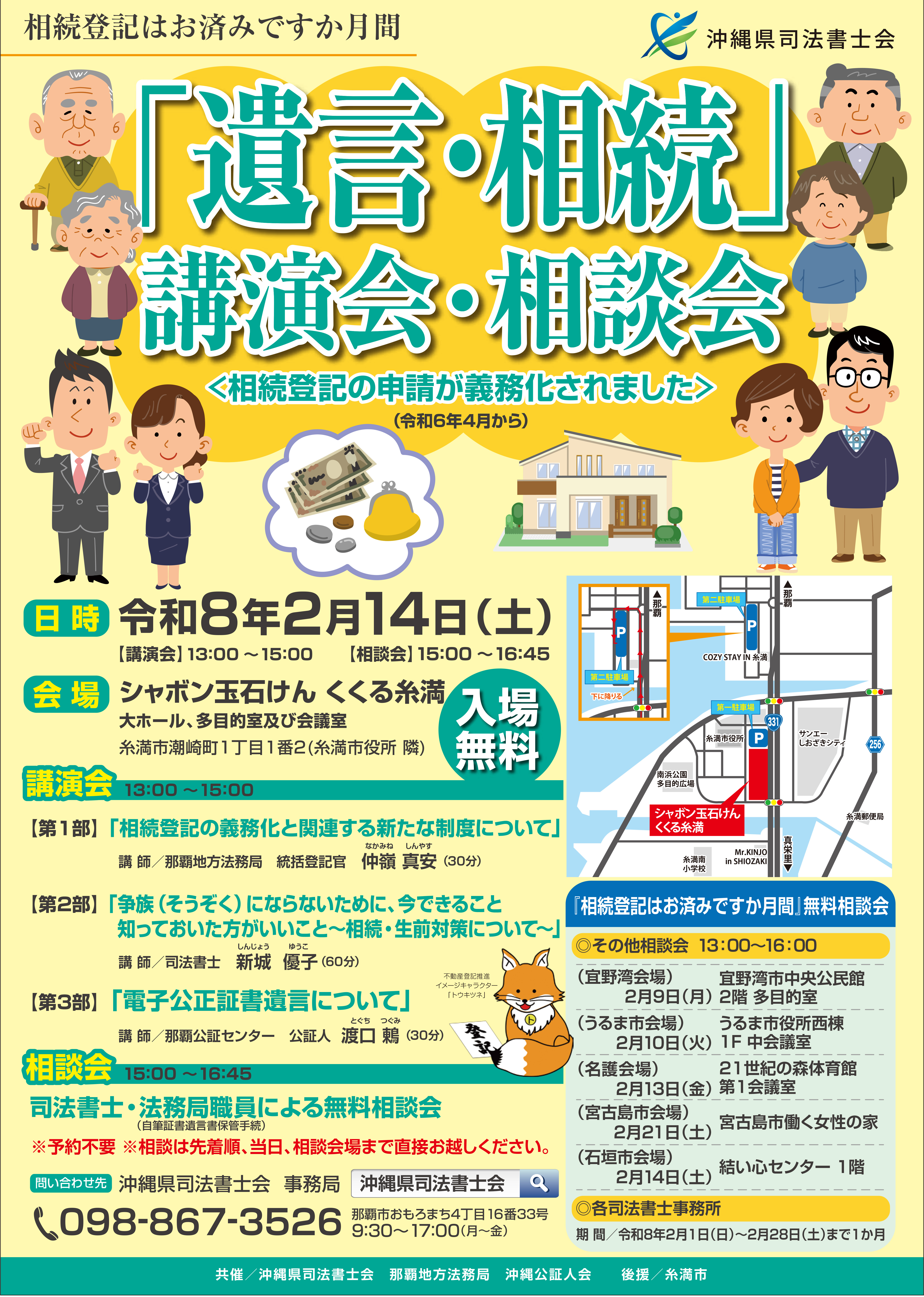 【令和8年2月14日 (土) 「遺言・相続」講演会・相談会 開催】