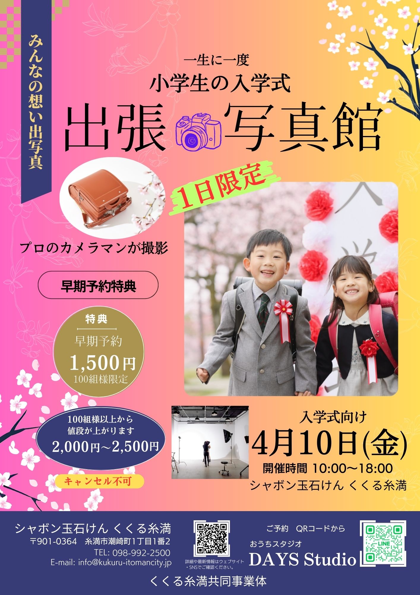 【令和8年4月10日 (金) 一生に一度、小学生の入学式「出張写真館」 開催】