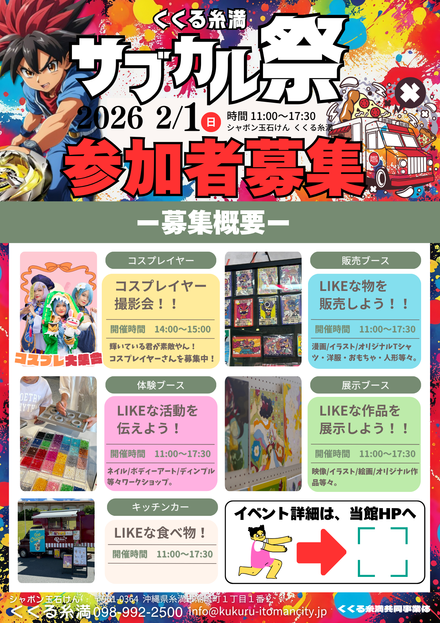【令和8年2月1日(日) 開催! くくる糸満 サブカル祭 参加募集のお知らせ! 】