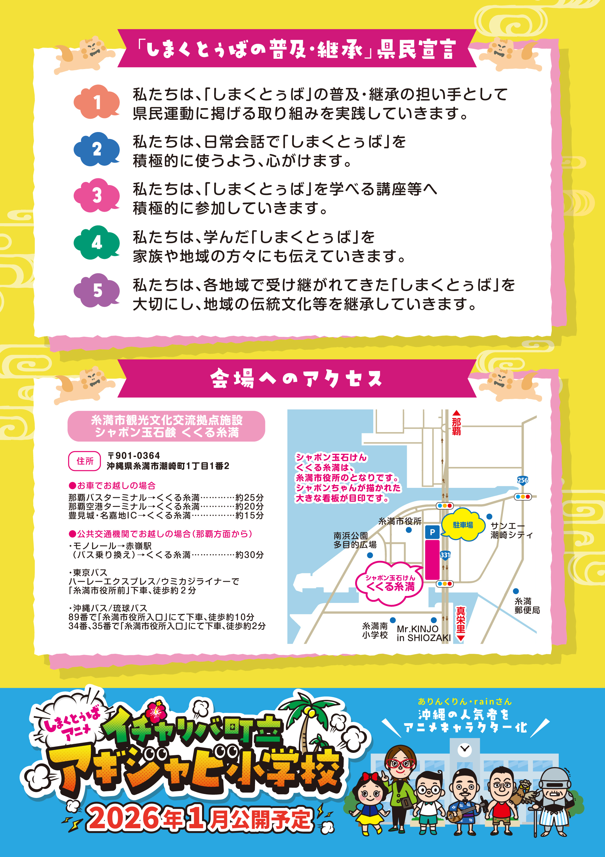 電話:098-894-7882 (沖縄県文化観光スポーツ部文化振興課しまくとぅば普及推進室)